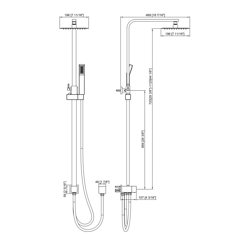 W18 7/16" H28 3/8" 8"Shower HeadStandard :